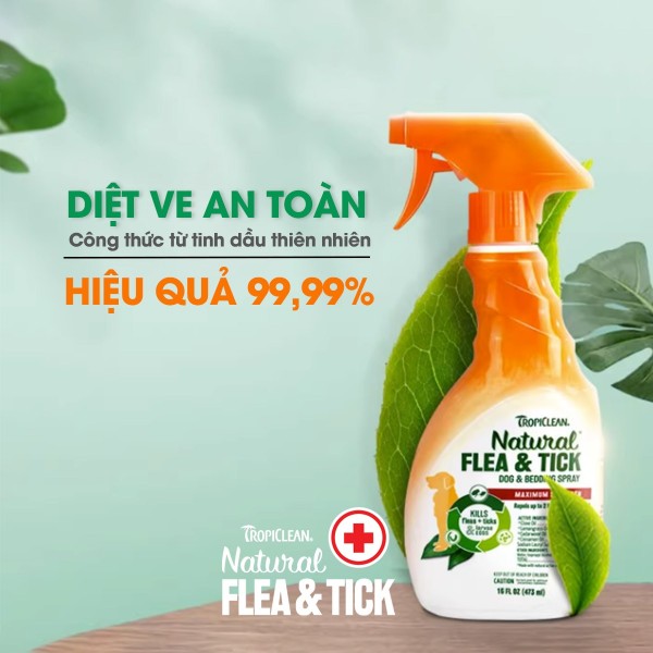 Flea & Tick Spray từ Tropiclean Mỹ - giải pháp diệt ve bọ chét dễ dàng và tiện lợi: